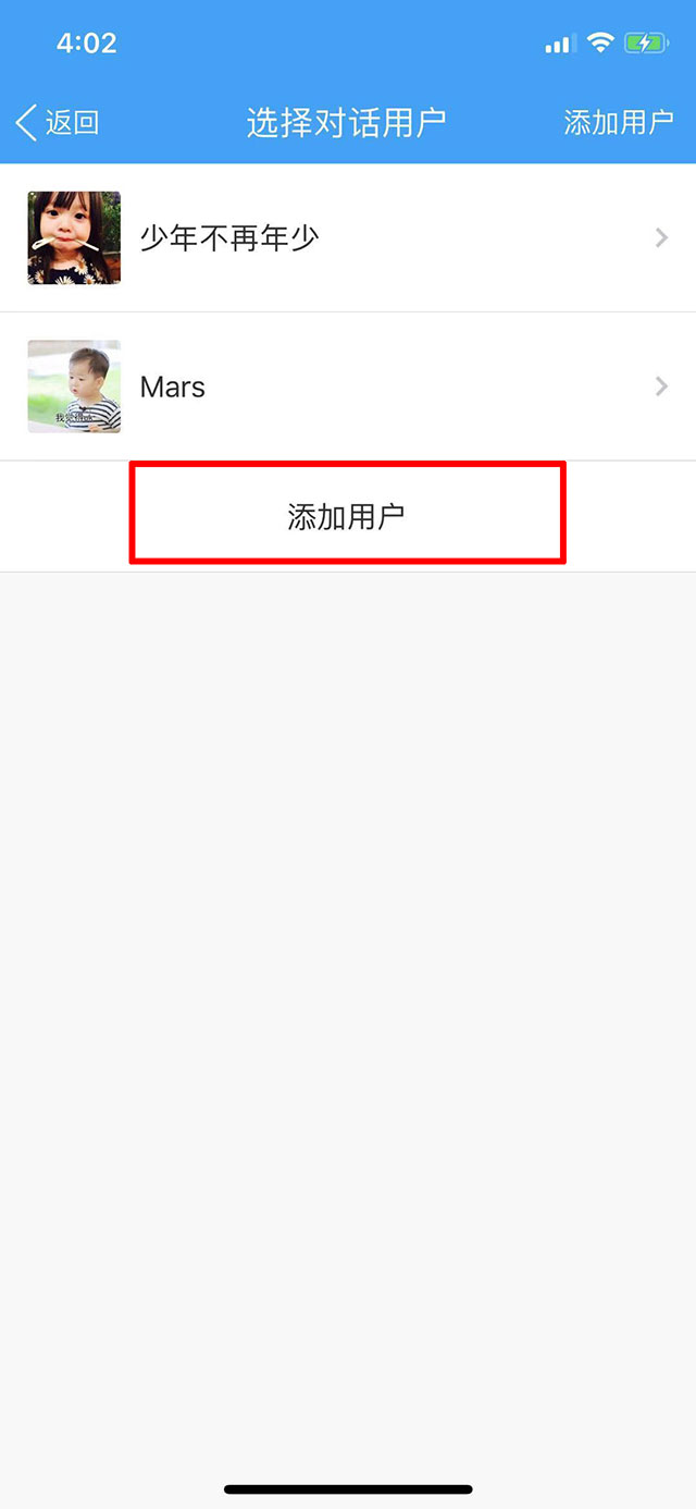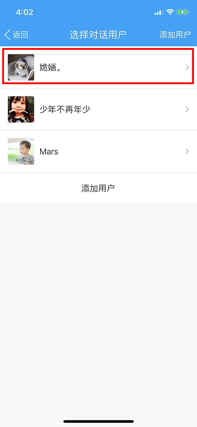 4.添加完成后,点击要聊天对话的用户,点击进去