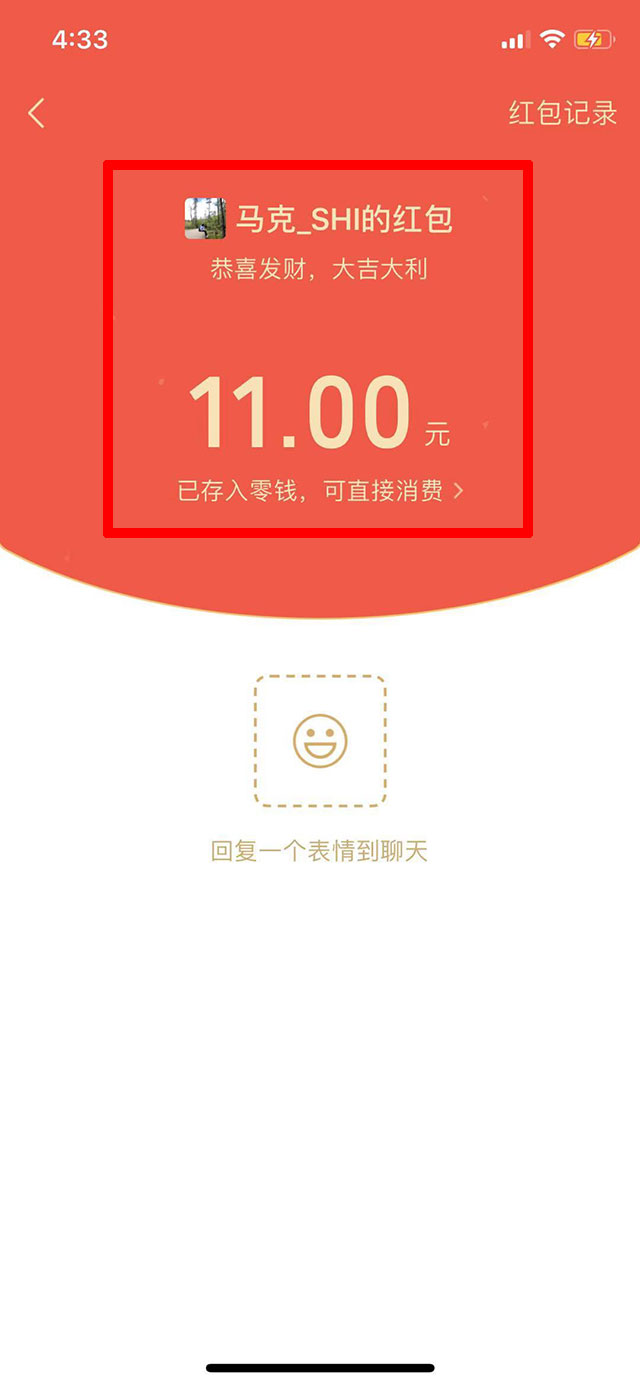 2.点击输入要发的红包金额,然后点击红色的塞钱进红包按钮